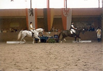 wenige Tage vor dem Turnier Marlis Schwanzer mit dem Schimmel Garibaldi