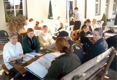 immer wird vor der Prüfung die Aufgabe noch einmal zu Fuß geprobt - hier (v.l.n.r.): Melanie, Katharina, Martina, Marlis, Karen |