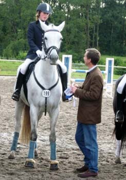 Das Ganze fing schon am Mittwochnachmittag auf dem Gelände beim Hof Masler in Granderheide an, wo wir gleich zwei Jungtalente in das Rennen um die Meisterschaft der Vielseitigkeitsreiter schickten: Nele Spiering, die gerade auf dem Sprung vom Ponylager zu den Großpferden ist, und Kim Böttcher, die ihr letztes Jahr als Junge Reiterin bestreitet. Für Kim war mit Leporello auf der schwierigen Strecke die Reise beim Hindernis Nr. 17 - dem Wasser - zu Ende, Nele hingegen erreichte auf Mayenne mit nur geringen Zeitfehlern das Ziel. Was dieser Ritt wert sein würde, musste die Dressur entscheiden, die bei der Vielseitigkeit ja die Berechnungsgrundlage bildet. Hier zeigte sich, dass die schöne Schimmelstute und Nele erst seit kurzem ein Paar sind und das Ergebnis schlug mit 45 Punkten zu Buche, doppelt so viele wie bei der späteren Siegerin Franziska Wulfsberg/Chagall. Das abschließende Springen absolvierte Nele aber wieder mustergültig und blieb mit der schnellsten Runde fehlerfrei. Am Ende hieß das Platz III. in der Kreismeisterschaft! | |||||||||