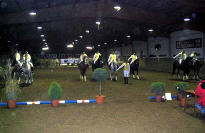 Dabei hatte es zunächst gar nicht gut ausgesehen für das Team um Mannschaftsführerin Kerstin Möller. Nicht nur, dass man während der monatelangen Trainingszeit mit dem Verletzungspech mehrerer Pferde kämpfen musste, hatte man auch nur auf zwei der drei Qualifikationsturnieren die Chance gehabt, sich die Fahrkarte für das Finale zu sichern. Die erste Qualifikation im Rahmen des Landesbreitensportturnieres findet stets zeitgleich mit dem großen Dressur- und Springturnier unseres Vereins statt, auf dem die Mannschaftsmitglieder als Helfer dringend benötigt werden und teilweise auch selbst aktiv an den Start gehen. Trotz aller Schwierigkeiten zeigte die Mannschaft eine schwungvolle Darbietung mit hohem Schwierigkeitsgrad, für die sie in diesem Jahr Musik aus der Feder von Dieter Bohlen ausgewählt hatte. |