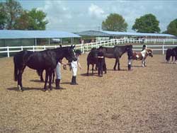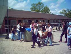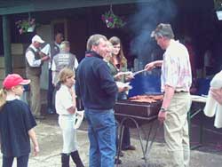 Wohl gefühlt haben sich unsere Gäste auf dem Reitertag, den wir am 22.05.2005 auf der neuen Reitanlage Dohrendorf in Seefeld, dem sehr schön ländlich gelegenen Ortsteil von Bad Oldesloe, ausrichteten. Vom Vorführ- und Pflegewettbewerb und der Führzügelklasse für die jüngsten Pferdefreunde bis hin zum A-Springen und dem Dressurfinale der Vereinsmeisterschaft in der Klasse L ging es den ganzen Tag lang rund. Neben den vielen Teilnehmern vom RuFV Bargteheide und aus unseren befreundeten Nachbarvereinen hatten auch zahlreiche Zuschauer den Weg auf diese herrlich im Grünen gelegene Reitanlage gefunden und erfreuten sich nicht nur an den reiterlichen Darbietungen sondern auch an dem kulinarischen Angebot, das unsere Festwartinnen Beatrice Holst und Carola von Borstel in Zusammenarbeit mit Susanne Maffert und zahlreichen freiwilligen Helferinnen und Helfern organisiert hatten. |