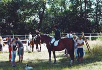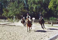 Hitzefrei gab es nicht auf unserem Reitertag im Stall Busch an diesem heißen 2. Juli 2006; wohl aber Marscherleichterung, von der wie üblich aber nur die Springreiter Gebrauch machten. So ritten nicht nur, sondern schwitzten ca. 130 Teilnehmer um die Wette, von denen ein Großteil Mitglieder des Reit- und Fahrvereins Bargteheide waren, die entweder in den Kategorien Springen und Dressur um die Vereins- bzw. Nachwuchsmeisterschaften rangen oder aber im Führzügel- und Reiterwettbewerb die ersten öffentlichen Auftritte absolvierten. |